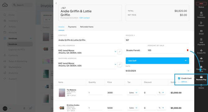 Please reach out to our team in ArtCloud Support for assistance with getting this payment option turned on for your use.