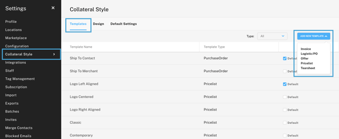 Head to Account Settings >> Collateral Style to manage the templates.